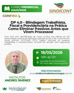 Objetivo: Capacitar o profissional de Departamento Pessoal a atuar de forma estratégica, preventiva e técnica, indo além da execução operacional, com foco em: Identificação de riscos ocultos nas rotinas do DP Interpretação prática da legislação aplicada ao dia a dia Cruzamentos fiscais (eSocial, DCTFWeb, FGTS Digital) Redução de passivos trabalhistas e previdenciários Tomada de decisão com segurança jurídica.